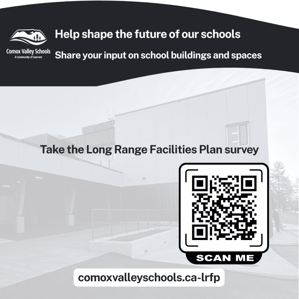 Comox Valley Schools is inviting our school community to share input as we update our Long-Range Facilities Plan (LRFP).