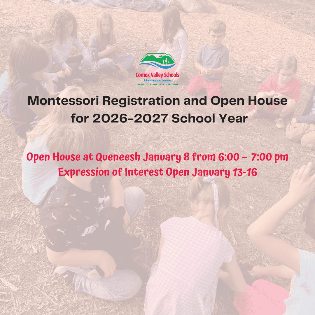 Queneesh Montessori: https://www.comoxvalleyschools.ca/queneesh-elementary/montessori-program/