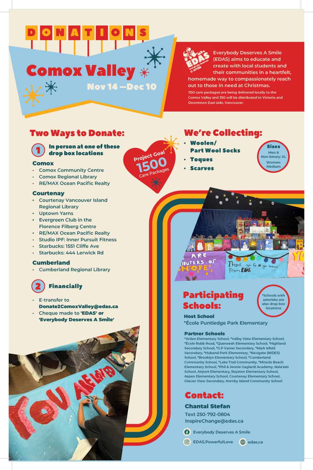 Comox Valley Schools is proud to support the launch of Season 22 of Everybody Deserves a Smile (EDAS), a student-led compassion and service-learning project running from November 14 to December 10.