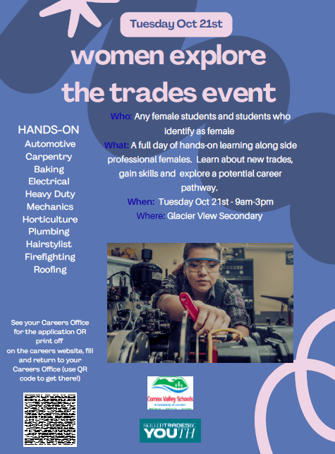 What: A full day of hands-on learning along side professional females. Learn about new trades, gain skills and eplore a potential career pathway.