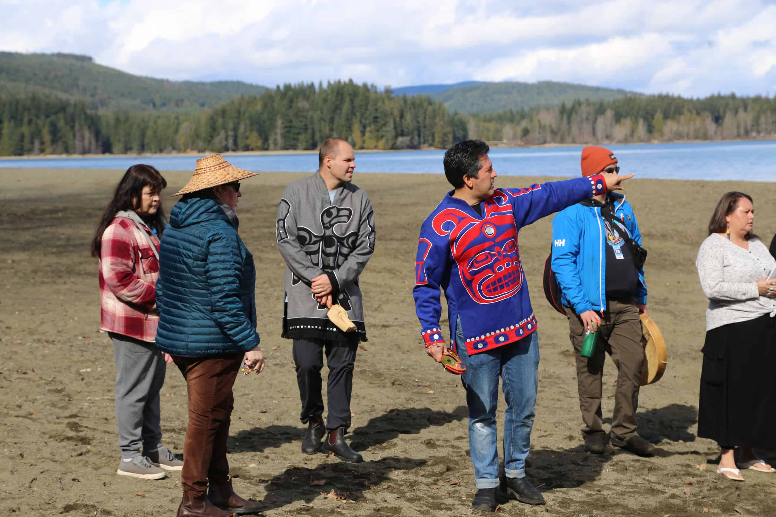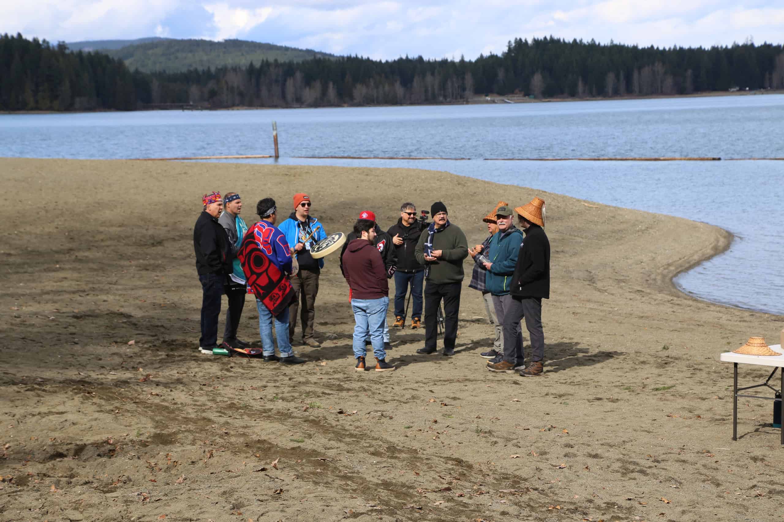 In a ceremony held on March 12, 2025 at Comox (Pentl’atch) Lake, Jessie Recalma gifted pentl’ach names for the two canoes. The canoes were blessed in traditional ceremony and the work included the calling of witnesses and oral history sharing from local knowledge holders.