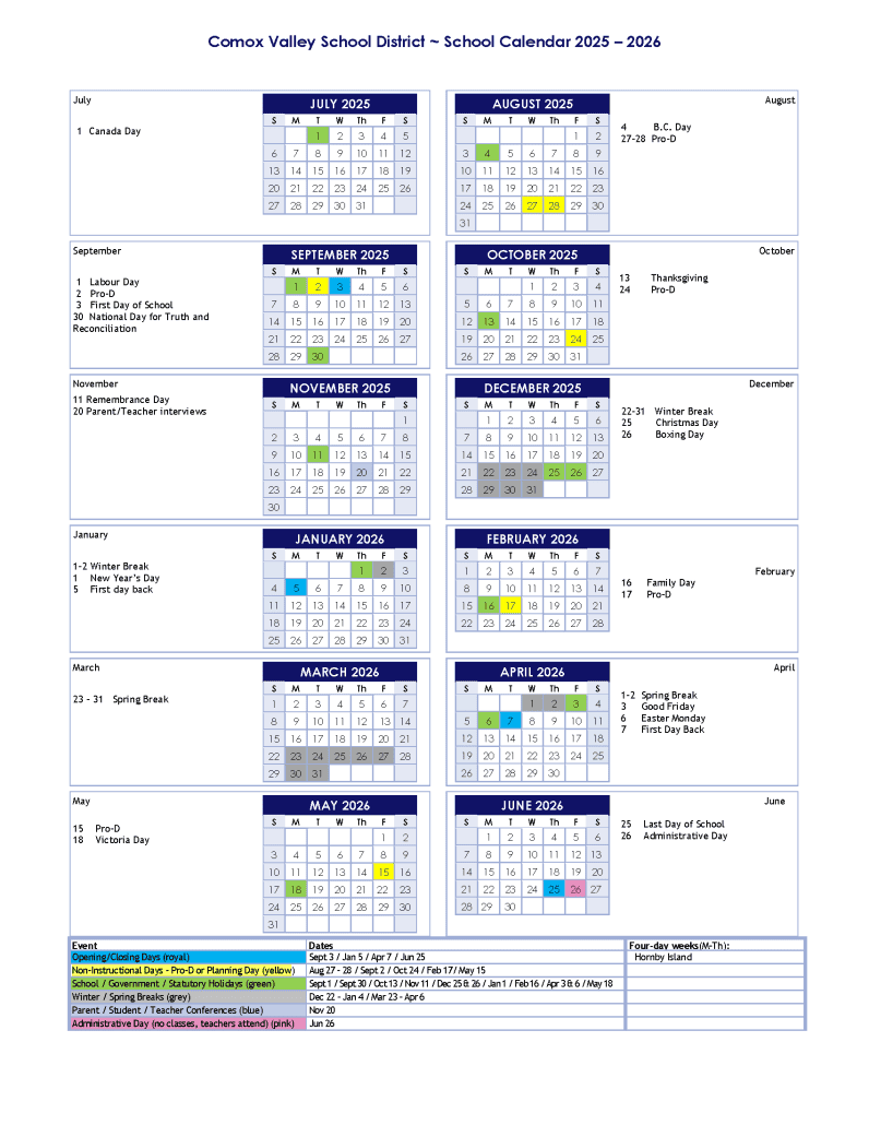 The updated school calendar with the May 15 non-instructional day now added is here on the district website: District Calendars – Comox Valley Schools
