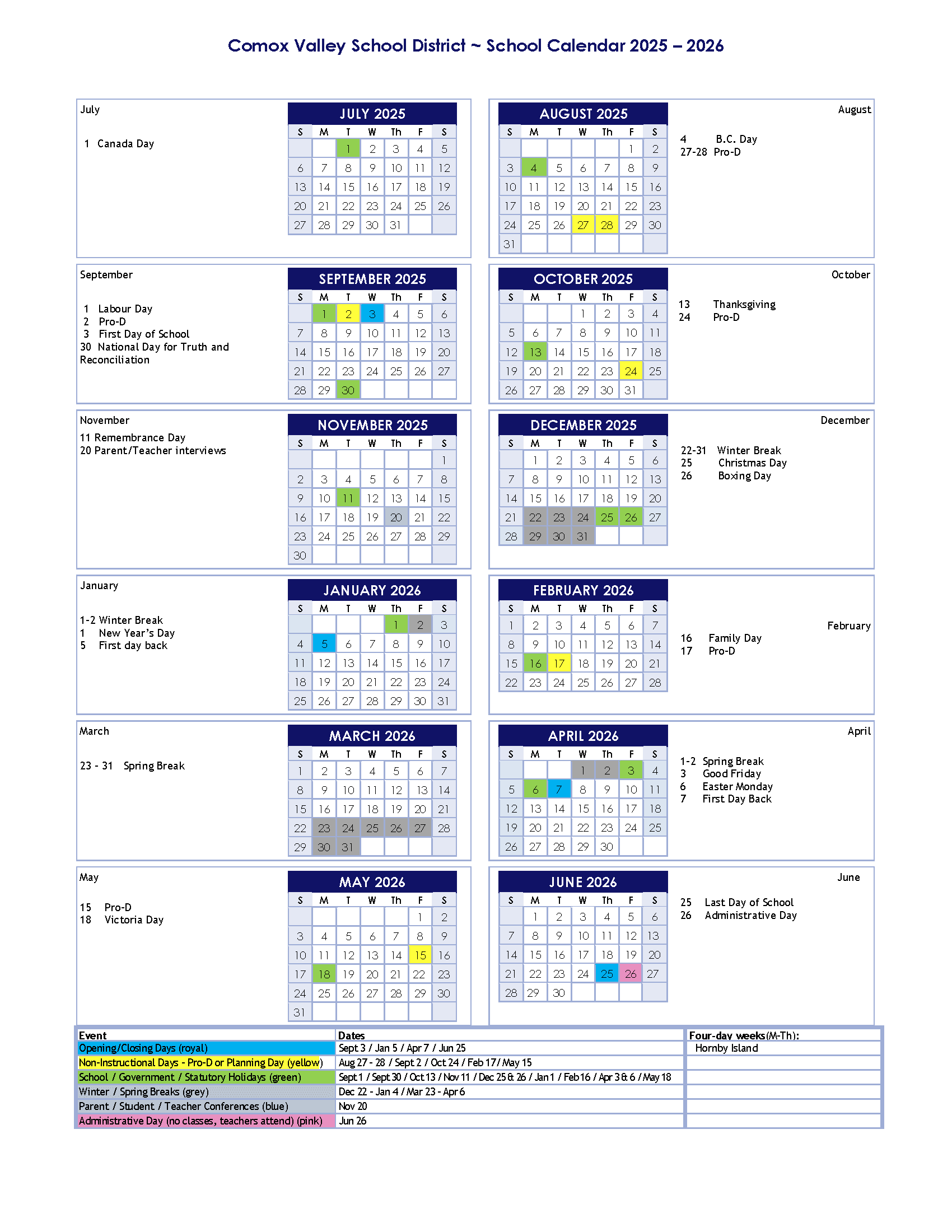 Comox Valley Schools is advising families and staff that a Non-Instructional Day will take place on Friday, May 15, 2026, following a decision of the Board of Education.